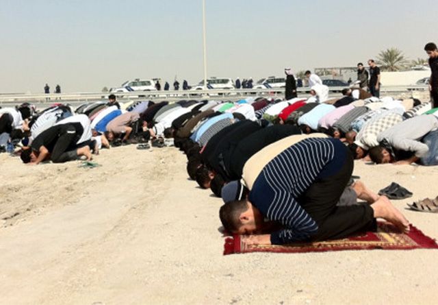 بحرينيون يصلّون أمس بالمساجد المهدومة